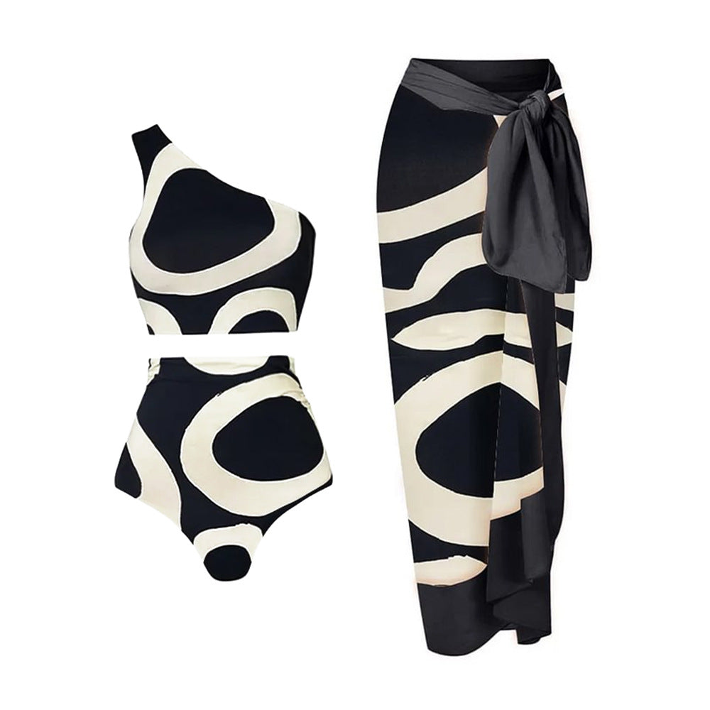 The timeless harmony of black and white adds a sophisticated touch to beach style. The abstract and modern patterns make it an ideal choice for those who prefer simple elegance.