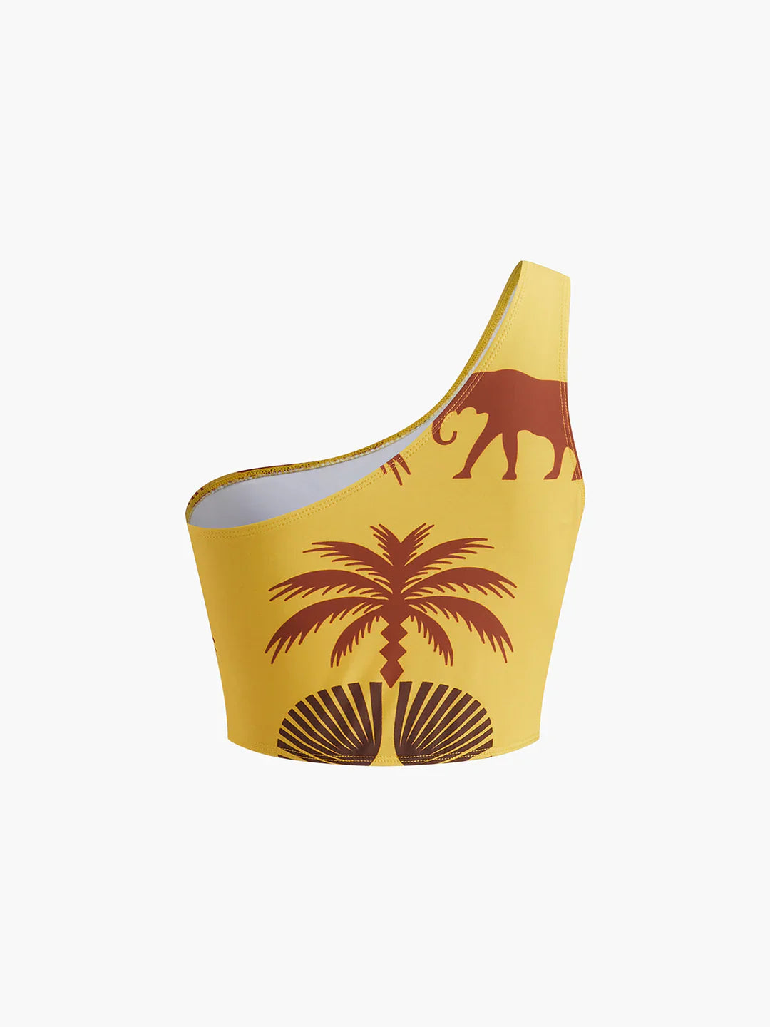 It has a unique appearance with palm trees and elephant figures carrying a tropical theme.
