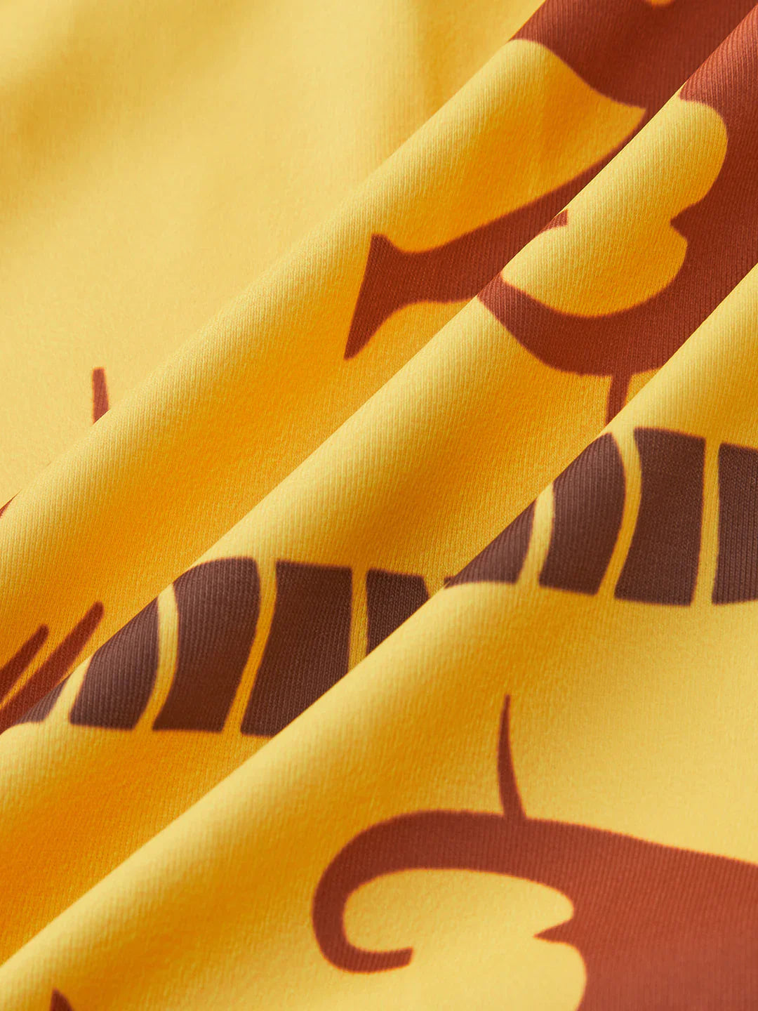 It offers a warm and energetic color combination with brown patterns on a yellow background .