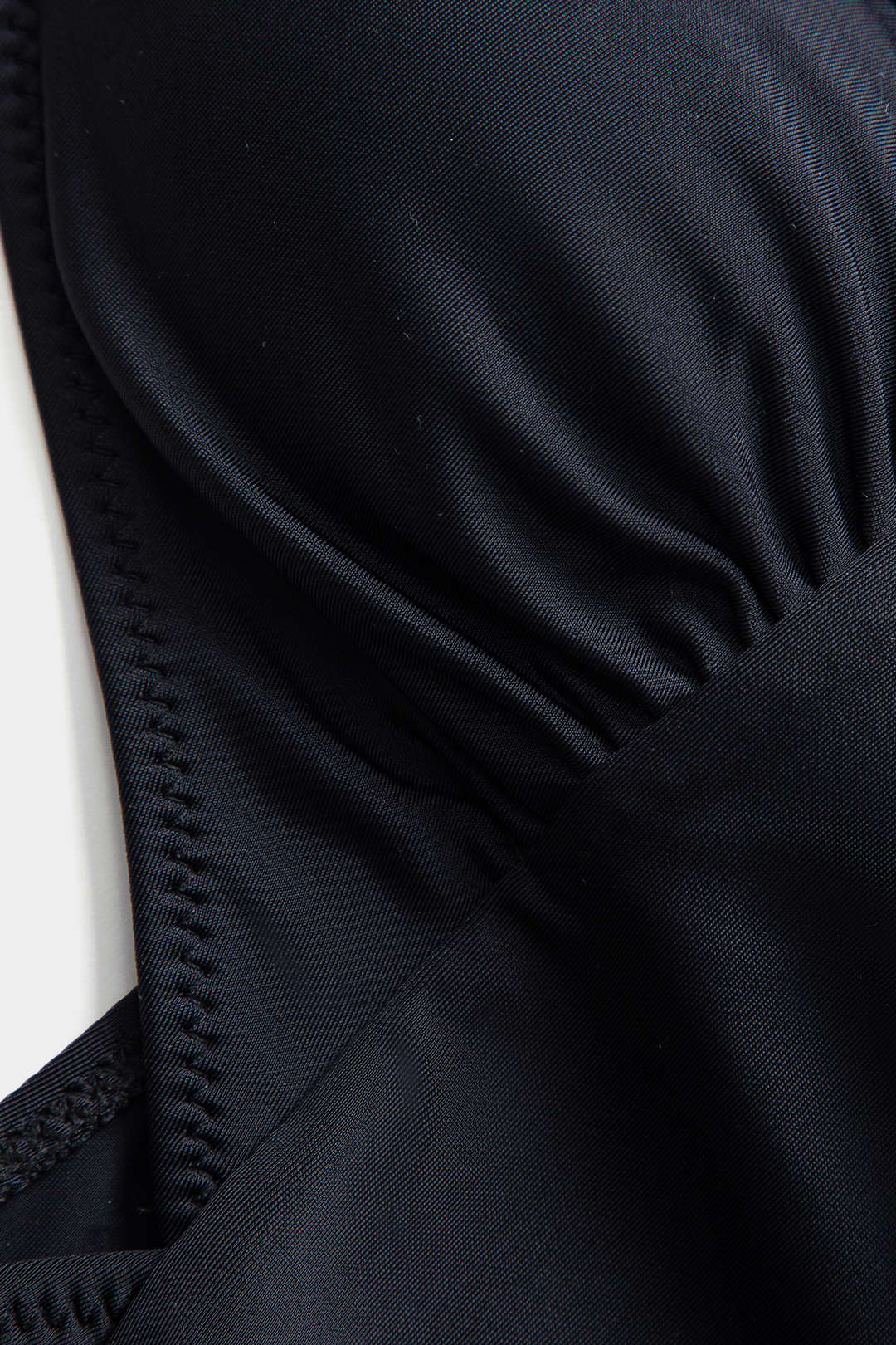 The gathered details create a tightening effect especially in the abdominal area, providing a more fit look.
