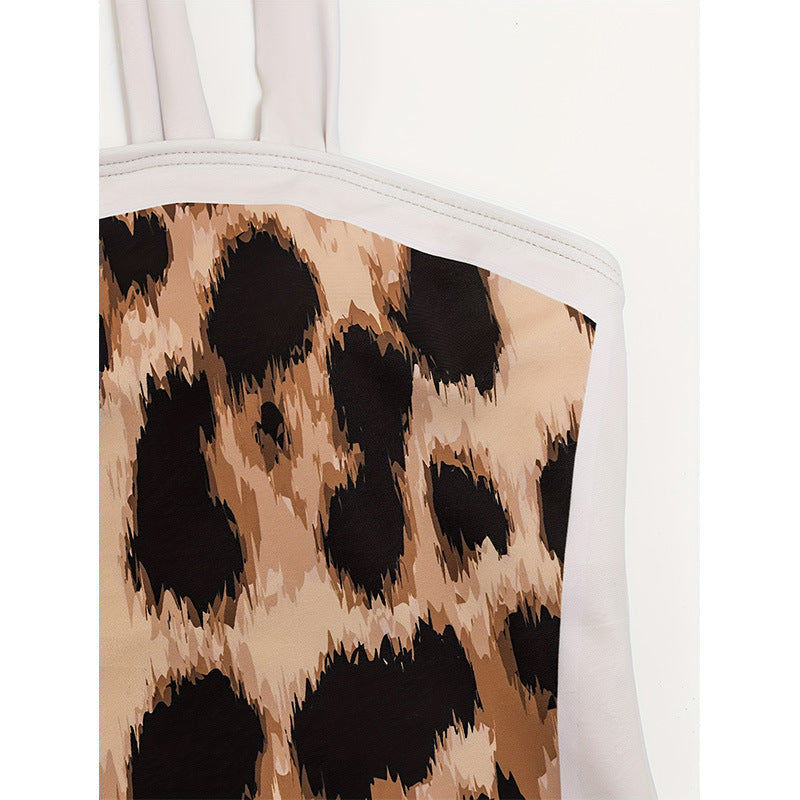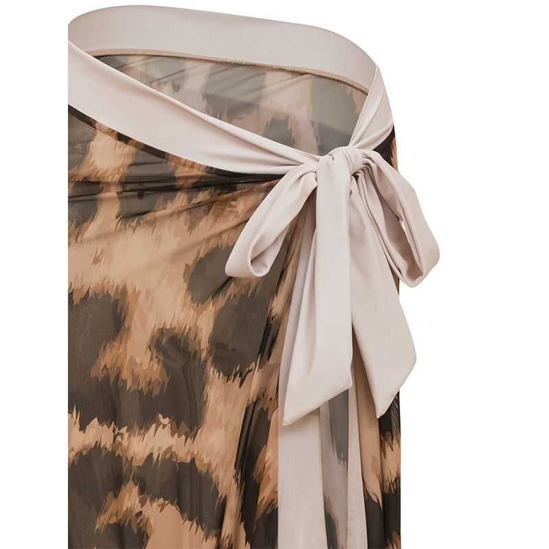 This bold and eye-catching leopard-print swimsuit set is designed for those who want to make a statement with their style during their summer vacation. The classic one-piece swimsuit offers a feminine touch with shoulder tie details, while a matching pareo completes the outfit for a sophisticated finish. This set will leave you looking both confident and modern on the beach.
