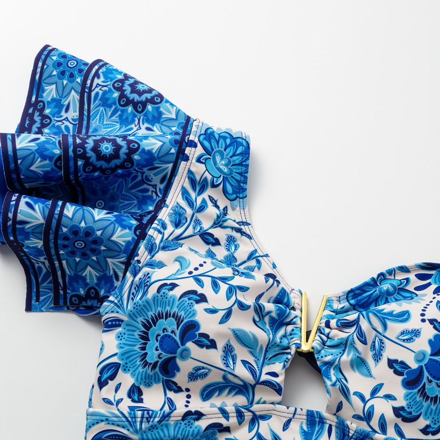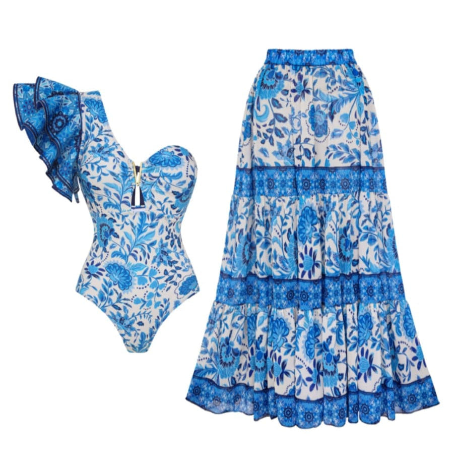 • The skirt, which is a continuation of the same pattern, creates integrity with the swimsuit.