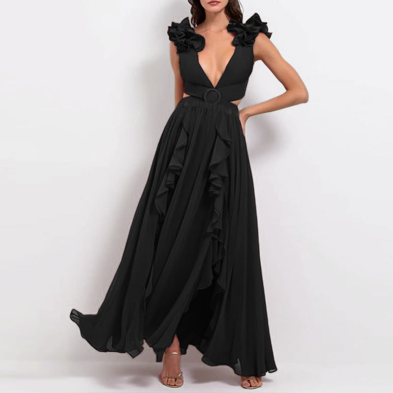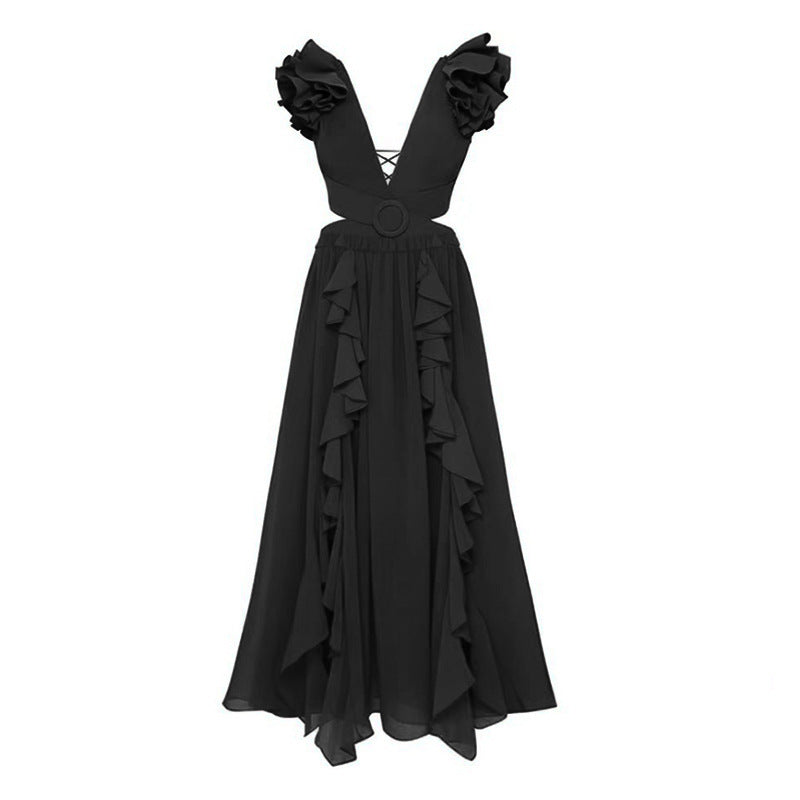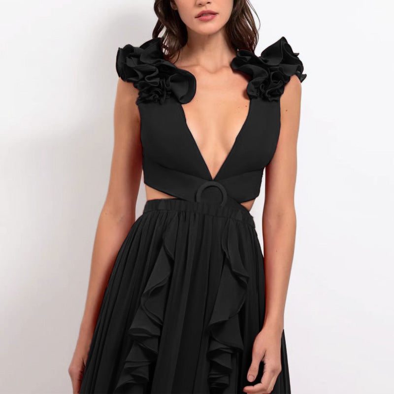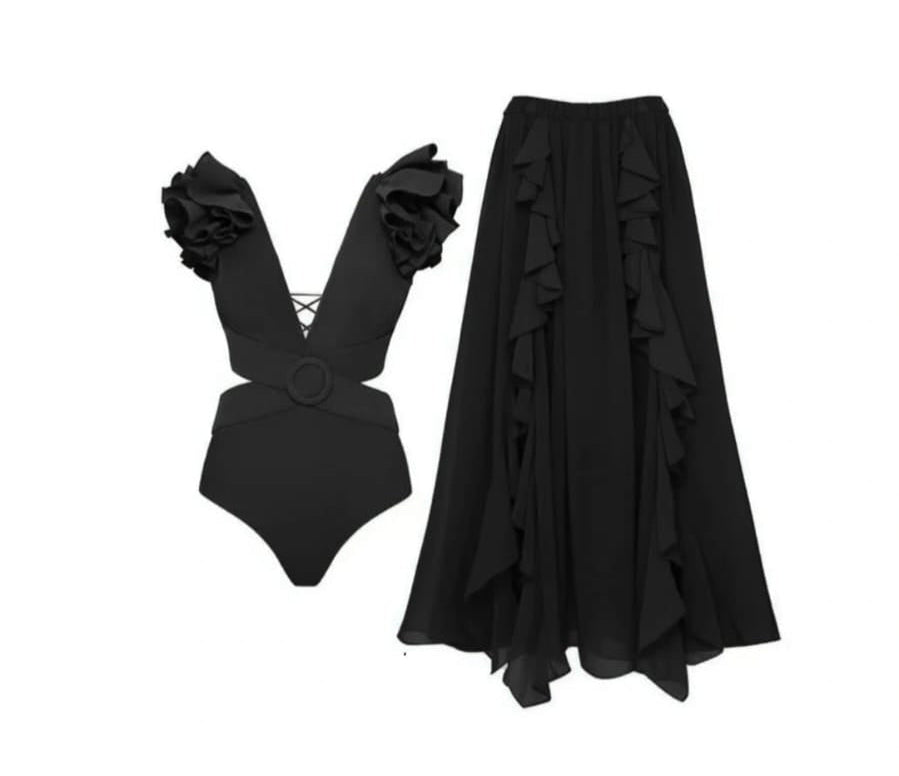 • Shoulder Details: Dramatic ruffle details on the shoulders add a feminine and romantic touch to the swimsuit, creating a striking look.